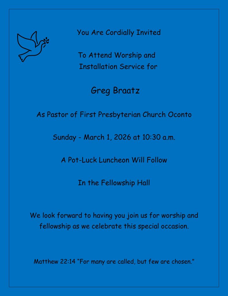 Invitation for Pastor Installation February 23, 2026February 23, 2026 Office Announcements, Blog Post